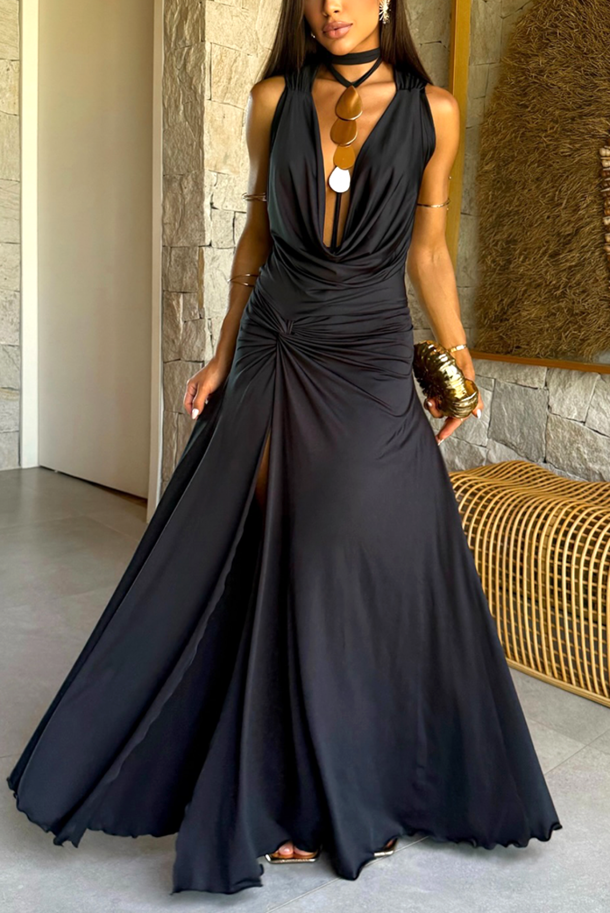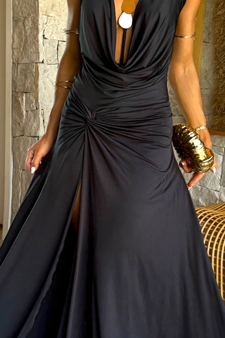 - Model ima atraktivan dizajn, seksi dekolte, prorez sa strane i crnu boju.