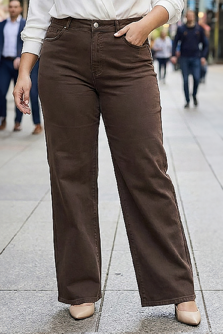 - Model ima visoki struk, ravan kroj, praktične džepove i klasičan dizajn.