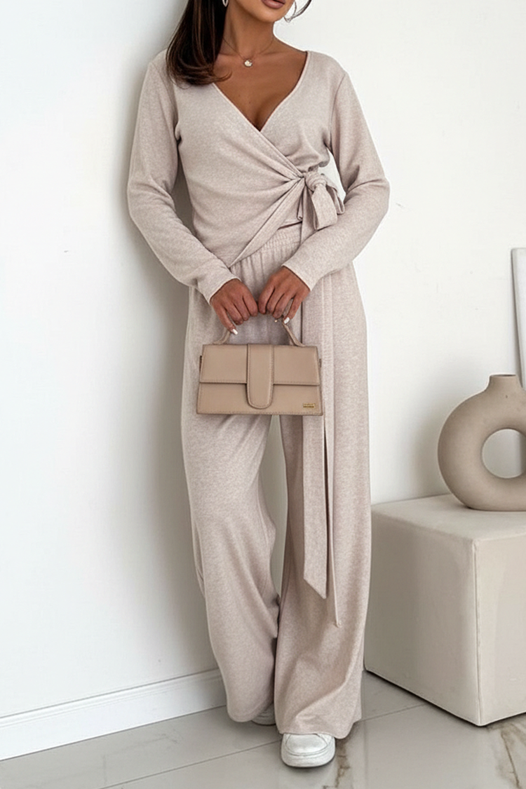 - Dvodijelni svakodnevni set koji se sastoji od bluze i hlača u klasičnoj boji.