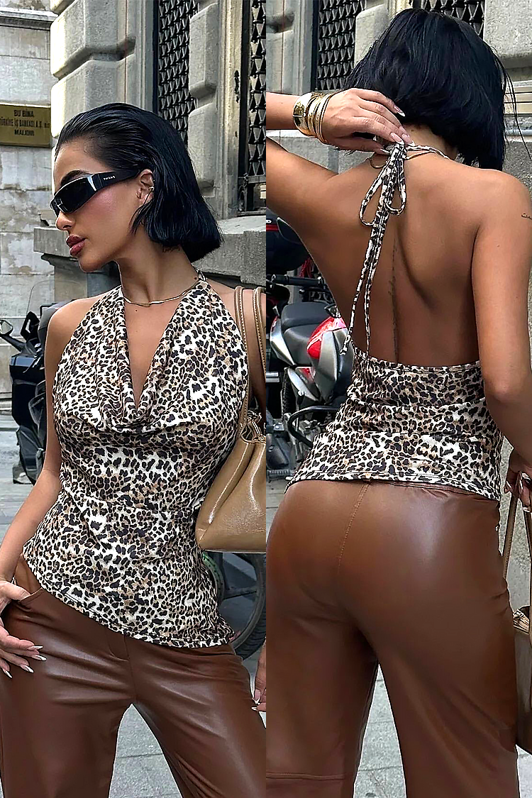 - Model ima klasičan kroj na tijelu, seksi dizajn, atraktivna gola leđa i leopard print.