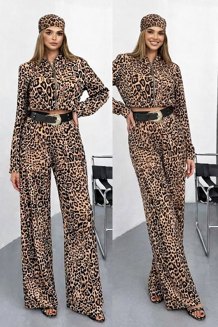 - Ženski ležerni dvodijelni set s leopard printom.