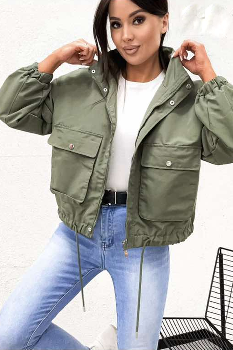 - Model ima patentni zatvarač cijele duljine sprijeda, kratku duljinu i praktične bočne džepove.