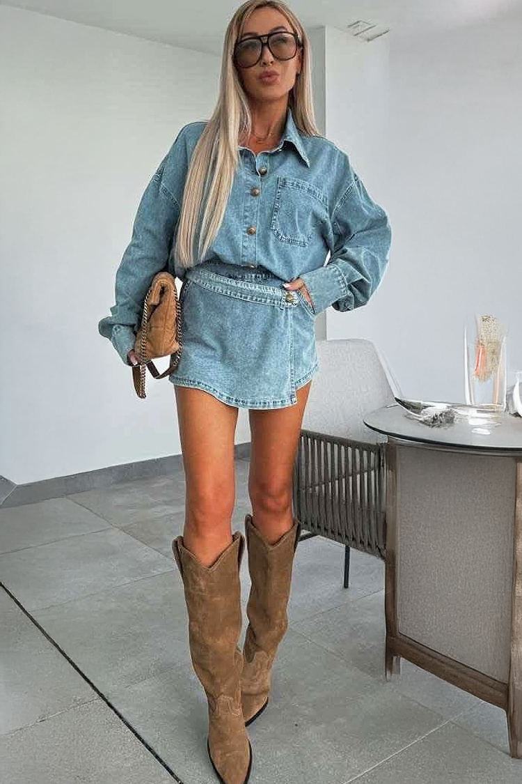 - Košulja ima duge rukave i kopčanje gumbima po cijeloj duljini, a donji dio je suknja-hlače.