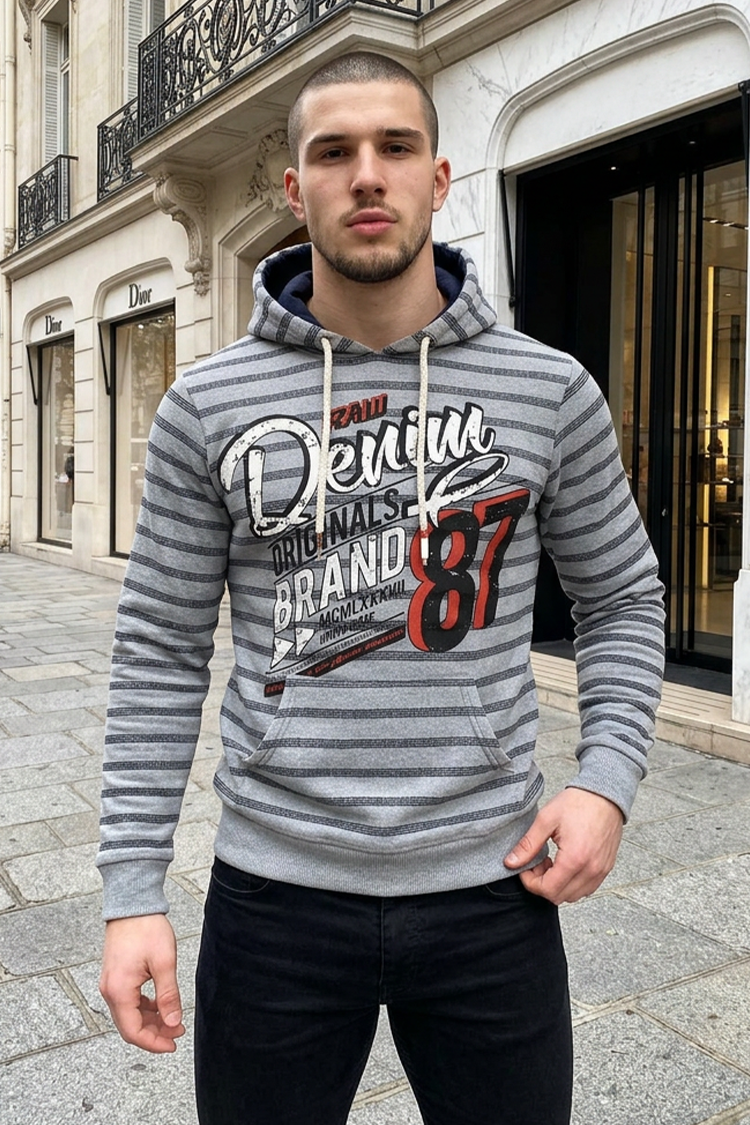 - Udobna i moderna muška dukserica s kapuljačom i džepovima, prikladna za svakodnevni život ili šetnju.