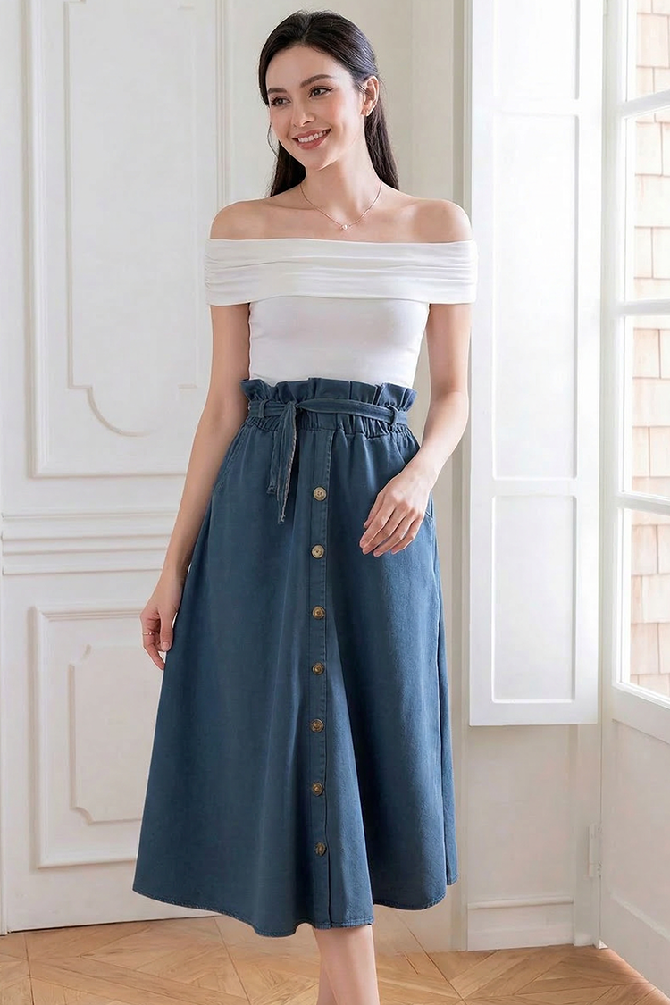 - Moderna midi suknja klasičnog dizajna, prikladna za svakodnevne trendi izglede.