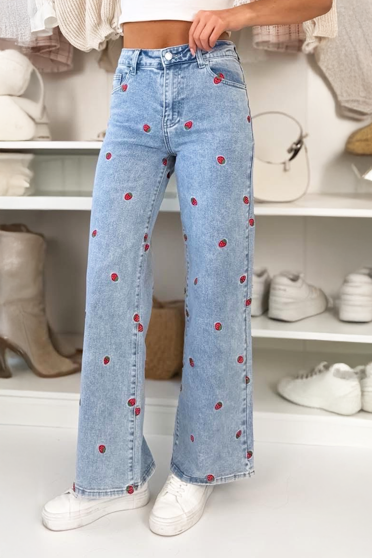 - Model ima visoki struk, udoban kroj, bočne džepove i atraktivan print jagode.