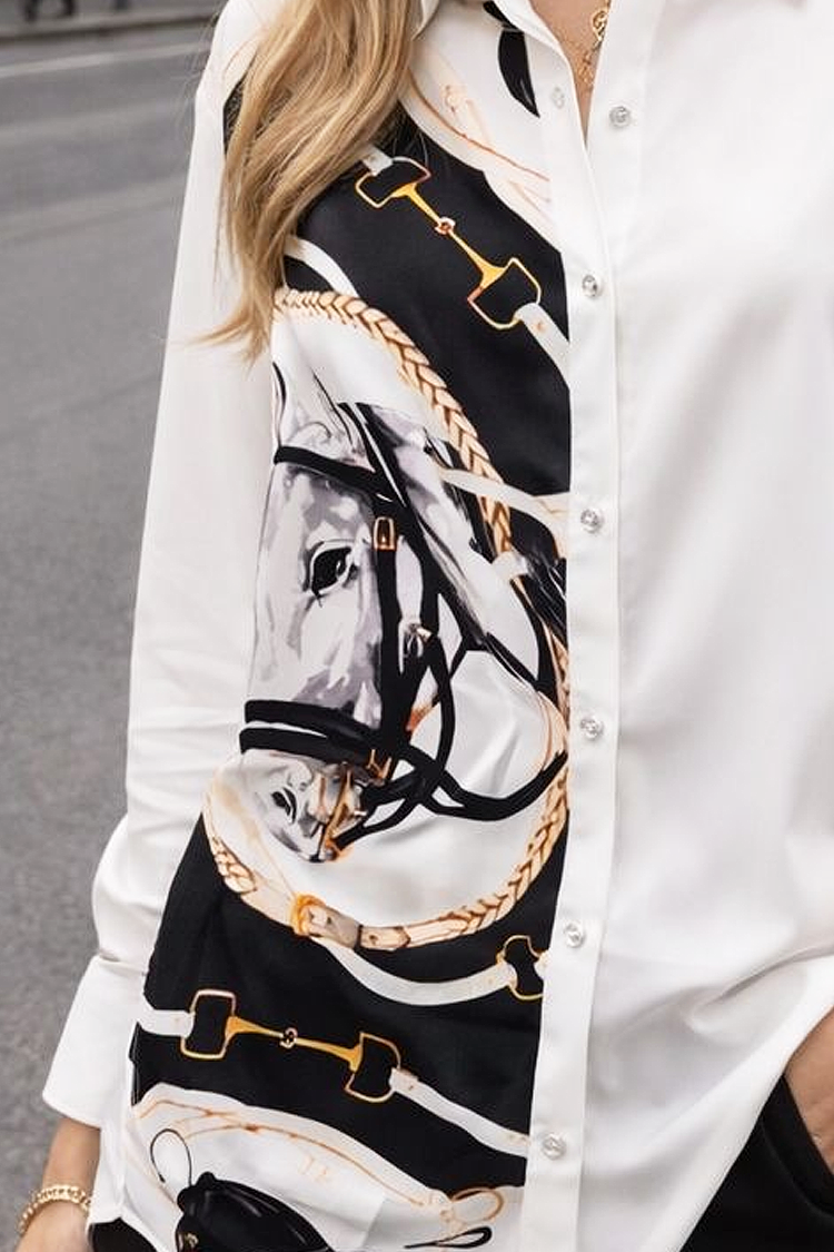 - Model ima gumbe po cijeloj duljini, ovratnik, klasičan dizajn i print sa strane.