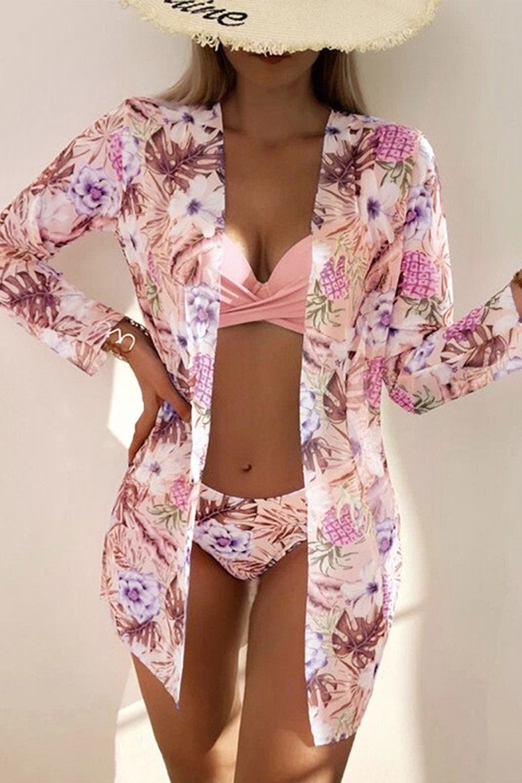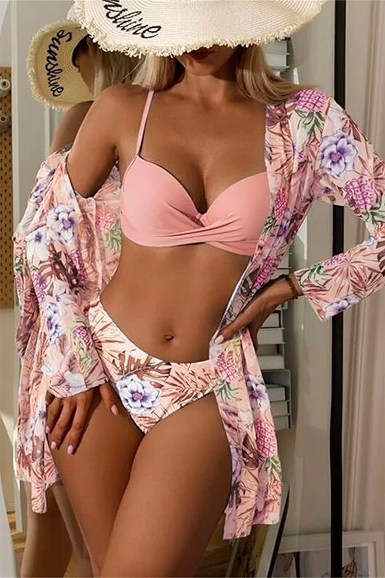 - Donji dio ima klasičan struk s izrezima sprijeda i udoban kroj. Pareo ima tropski print, proziran je i srednje duljine.