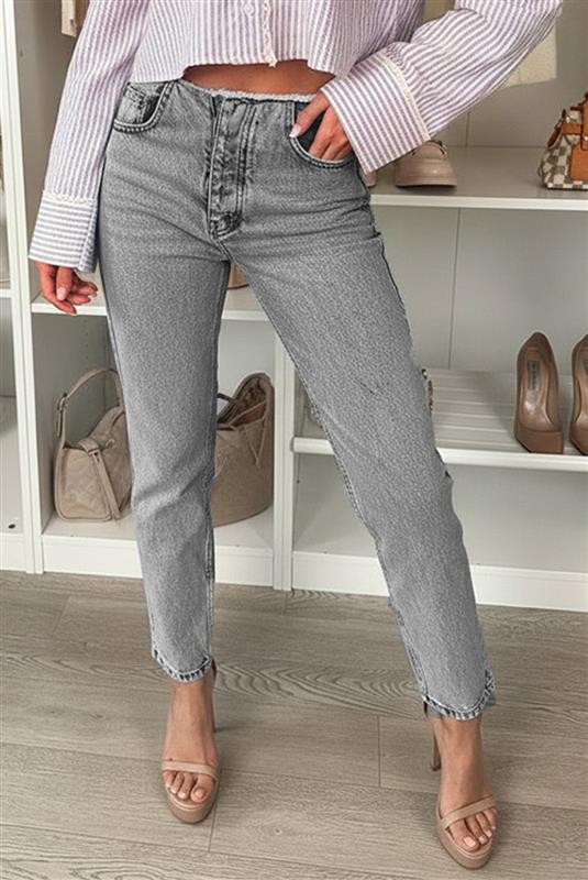 - Model ima srednji i elastičan struk, svijetlo sivi uzorak i ravan kroj.