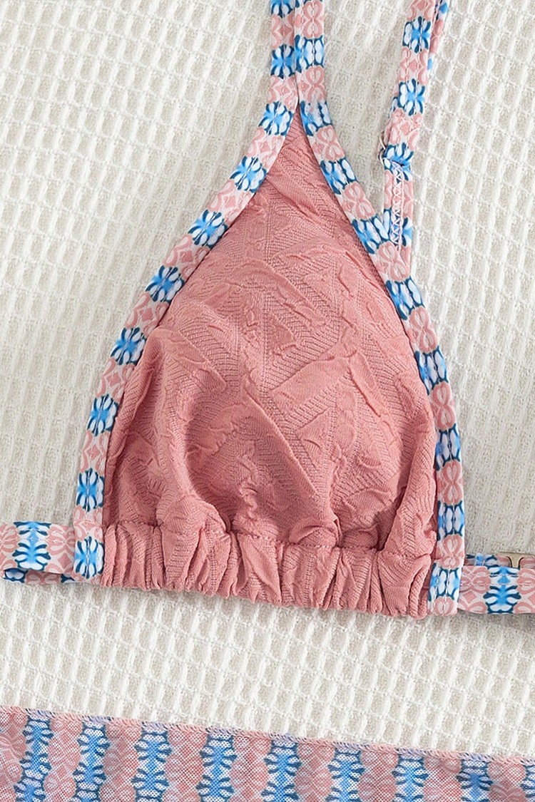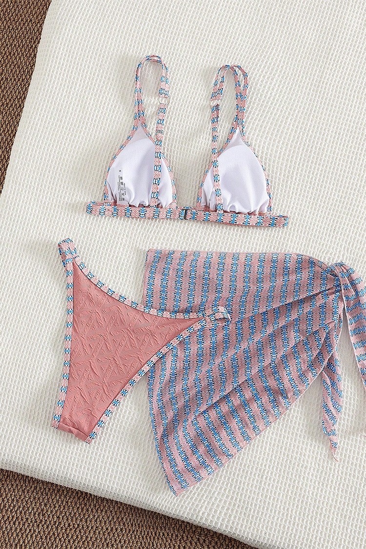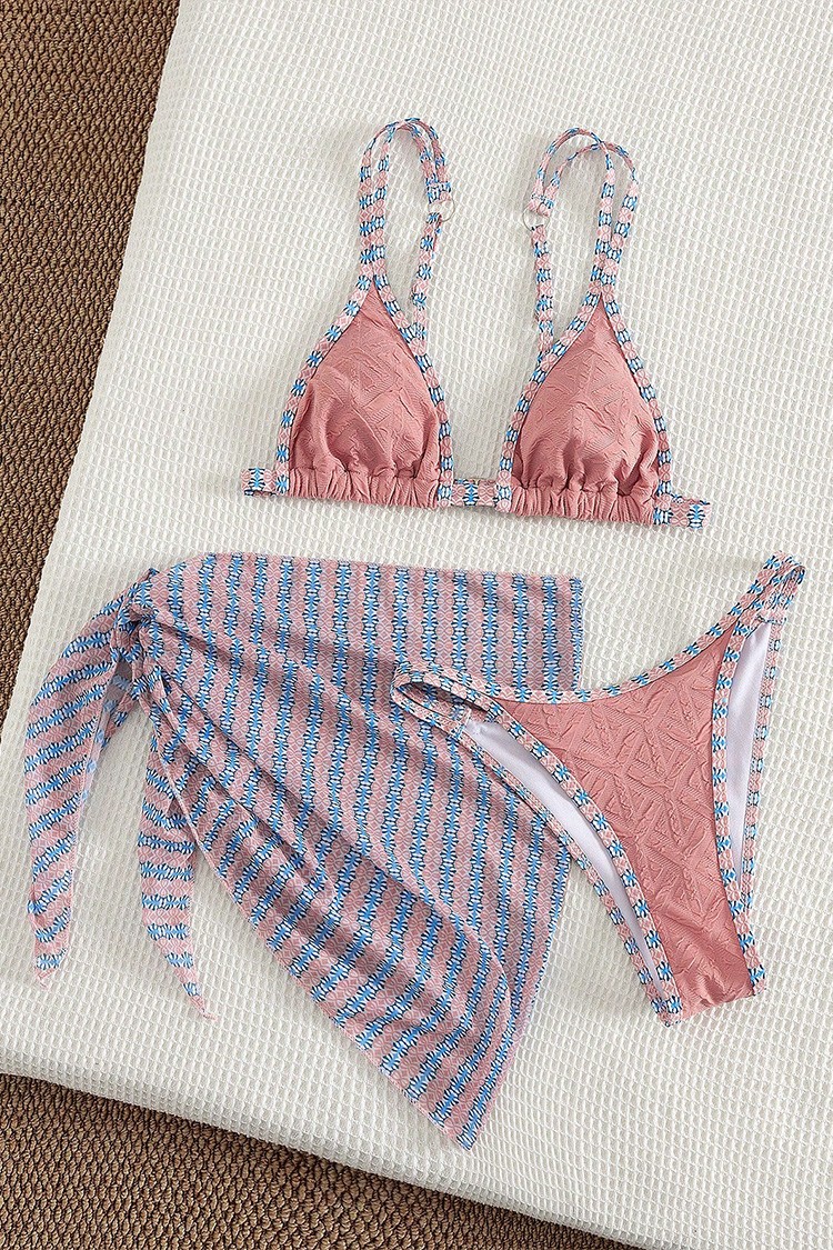 - Moderan set za plažu koji uključuje dvodijelni kupaći kostim i pareo.