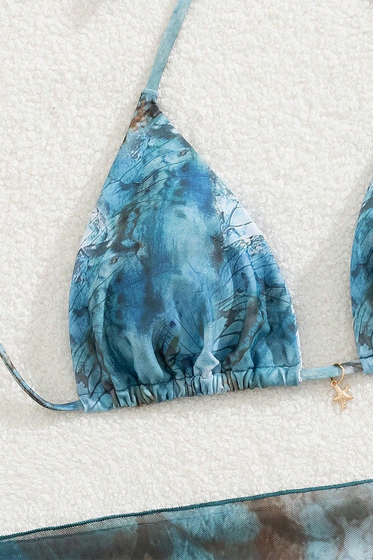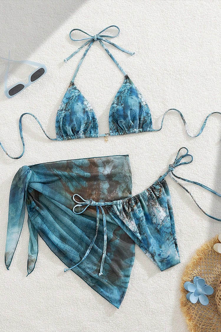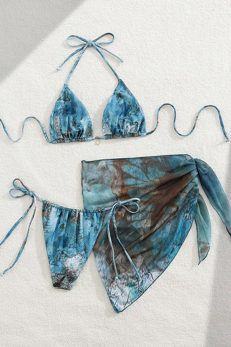 - Moderan set za plažu koji uključuje dvodijelni kupaći kostim i pareo.