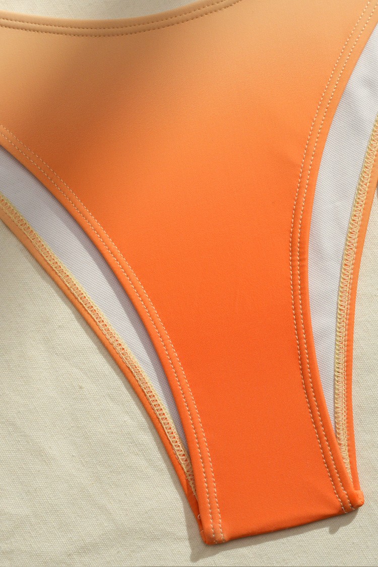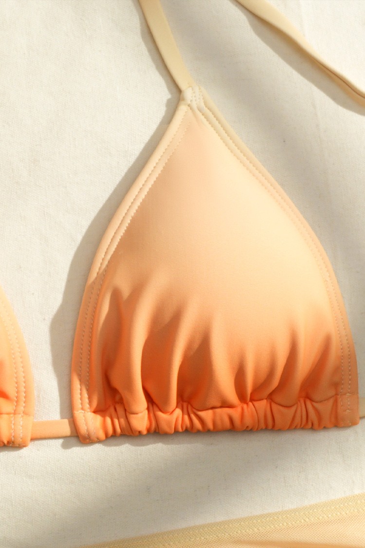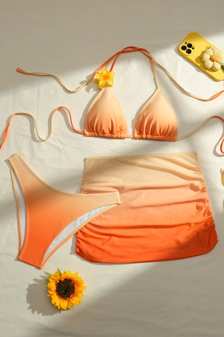 - Moderan set za plažu koji uključuje dvodijelni kupaći kostim i suknju.