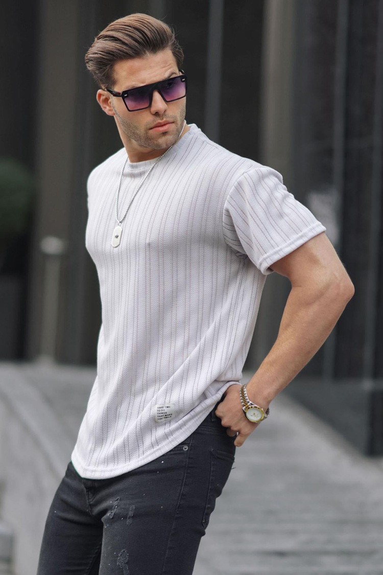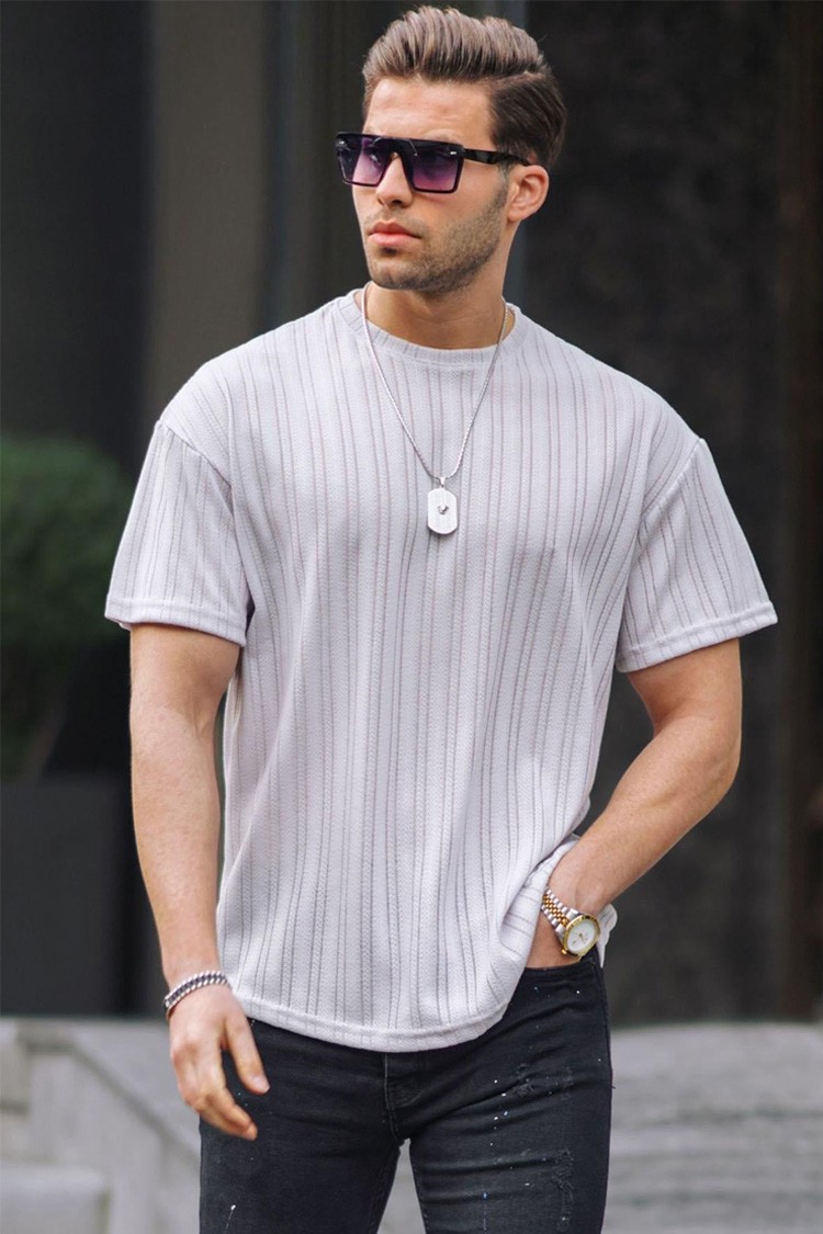 - Muška majica s okruglim izrezom, prikladna kao dodatak vašoj svakodnevnoj odjevnoj kombinaciji ili sportskoj odjeći.