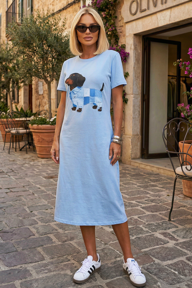 - Odaberite ovu midi haljinu s upečatljivim printom jazavčara u svijetloplavoj boji - prikladnu za svakodnevne i trendi izglede.
