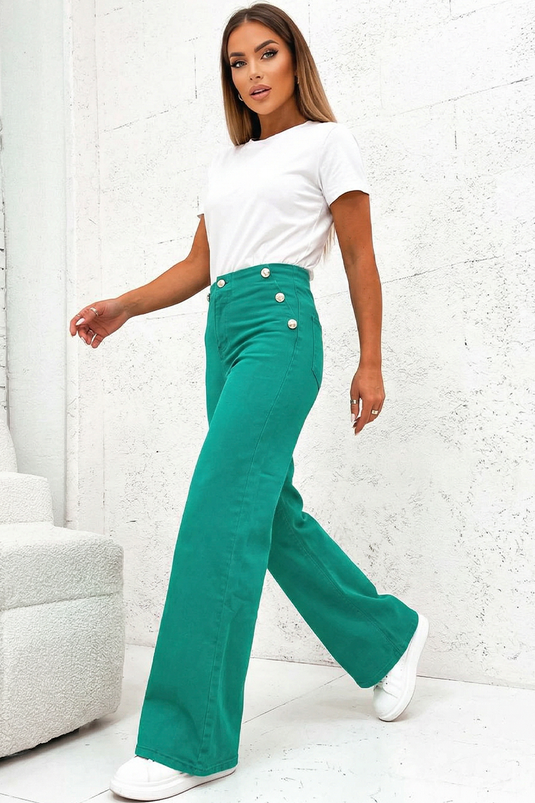 - Pratite modu s ovim trendi trapericama u zelenoj boji, savršenim za svakodnevni život.