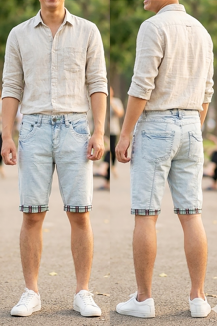 - Čist model muških traper hlačica u svijetloplavoj boji, prikladan za razne modne kombinacije.