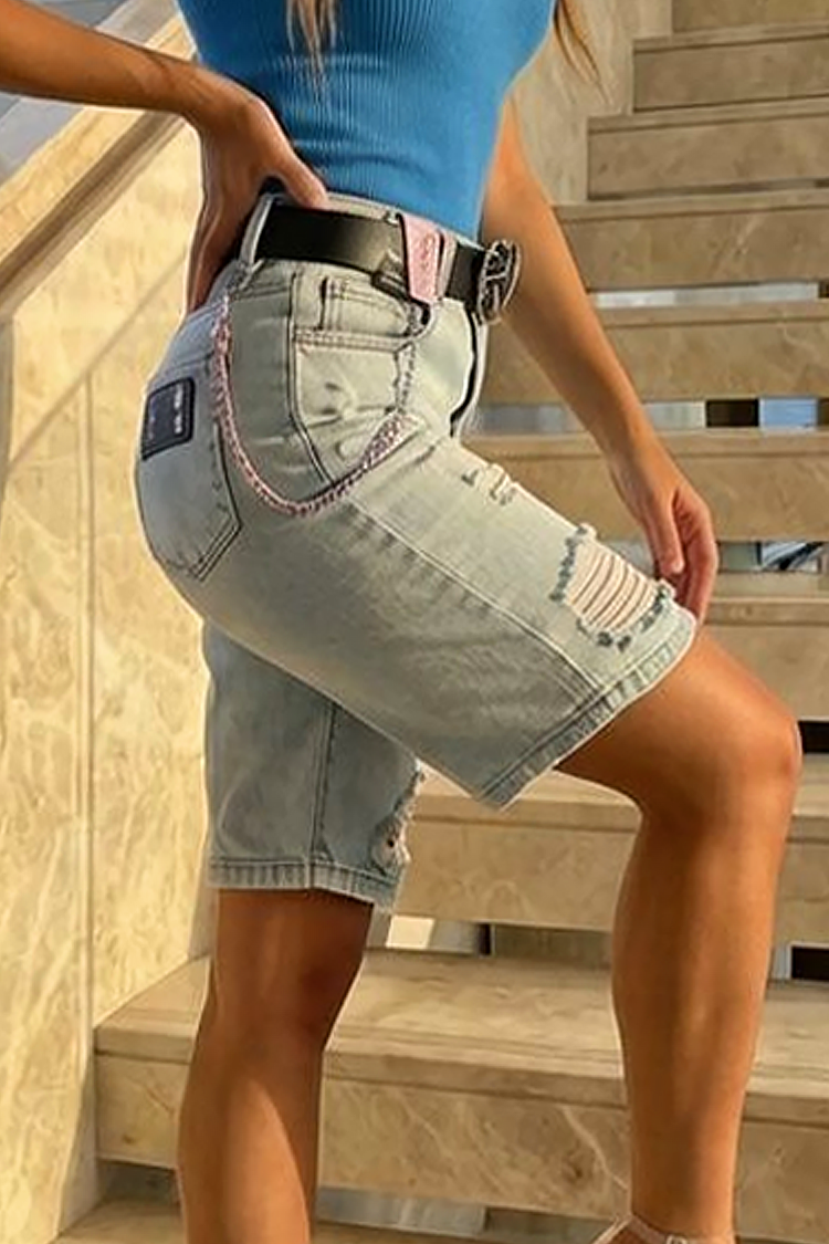 Kombiniraju klasični traper s aktualnim detaljima poput ukrasnih šavova na džepovima. Kroj kratkih hlača naglašava figuru i daje moderan urbani izgled, a blago poderani elementi savršen su razigran završetak. Mogućnost remena pomaže svakoj dami da eksperimentira.
