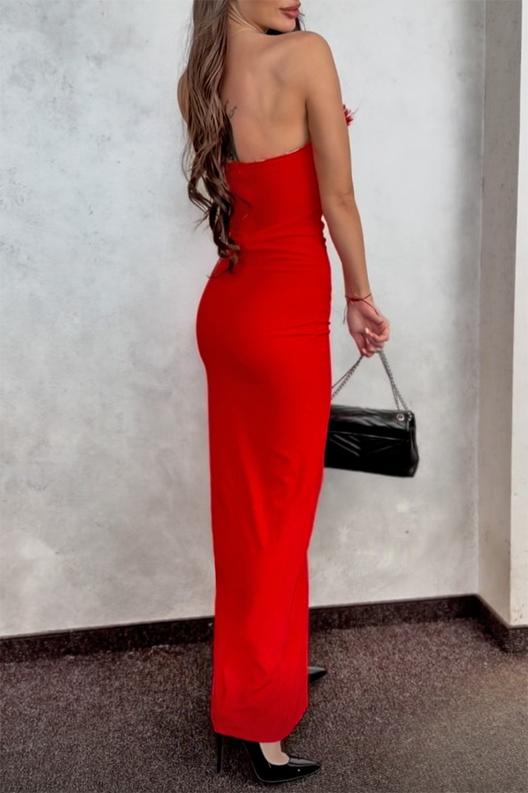 elegantna duga haljina s visokim prorezom i golim leđima FAROLMA RED