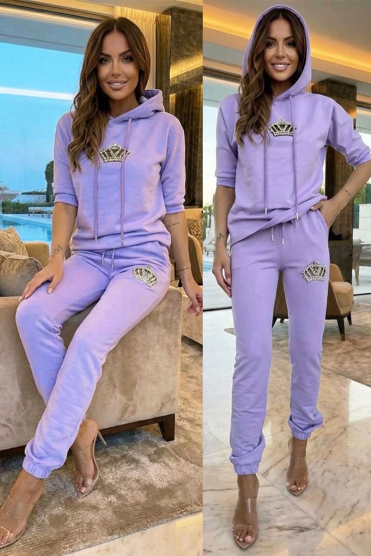 ženski sportski set u dva dijela s ukrasom od kamenja CALYRA PURPLE