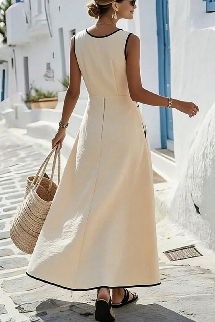 elegantna duga ljetna haljina s kontrastnim crnim obrubom ANRIELA